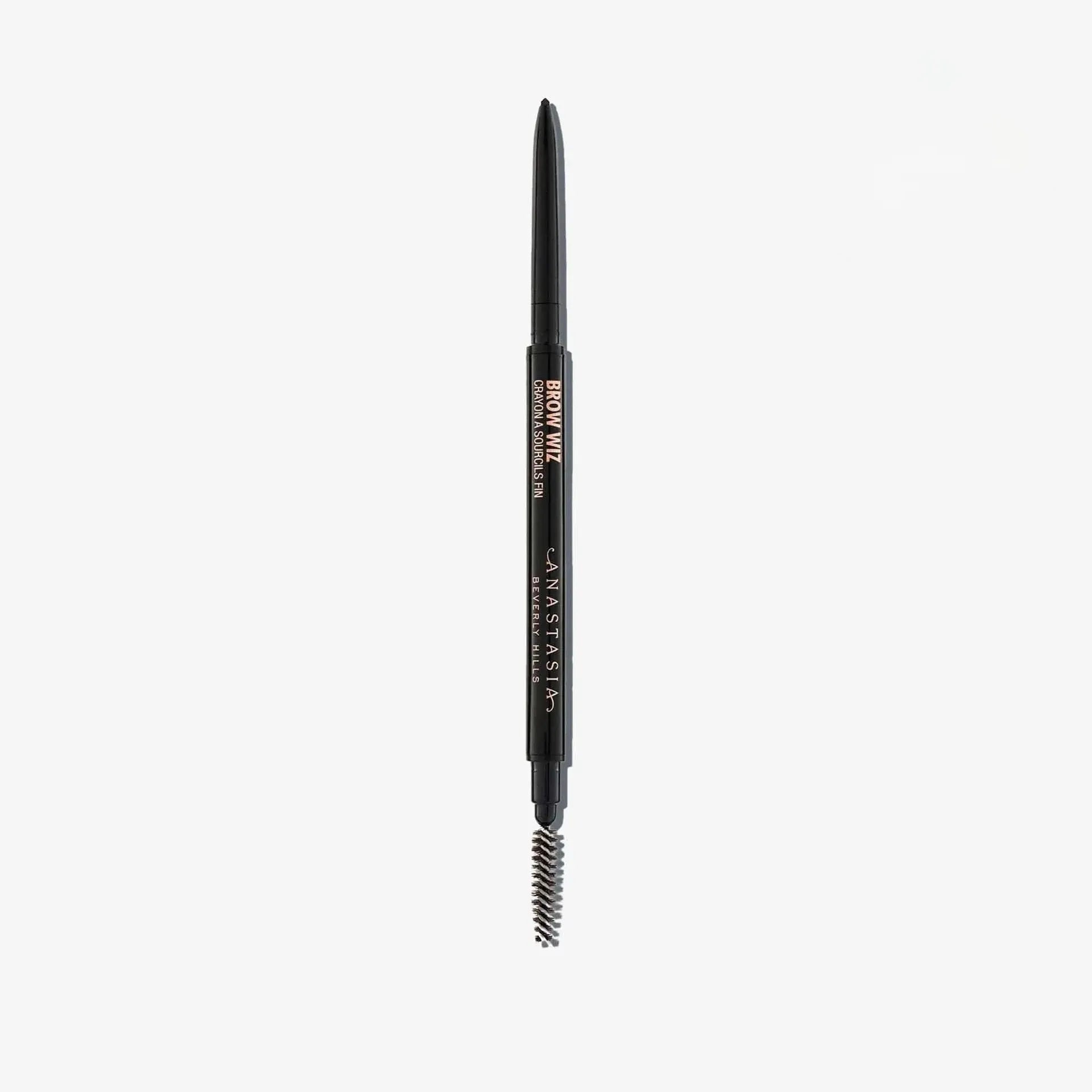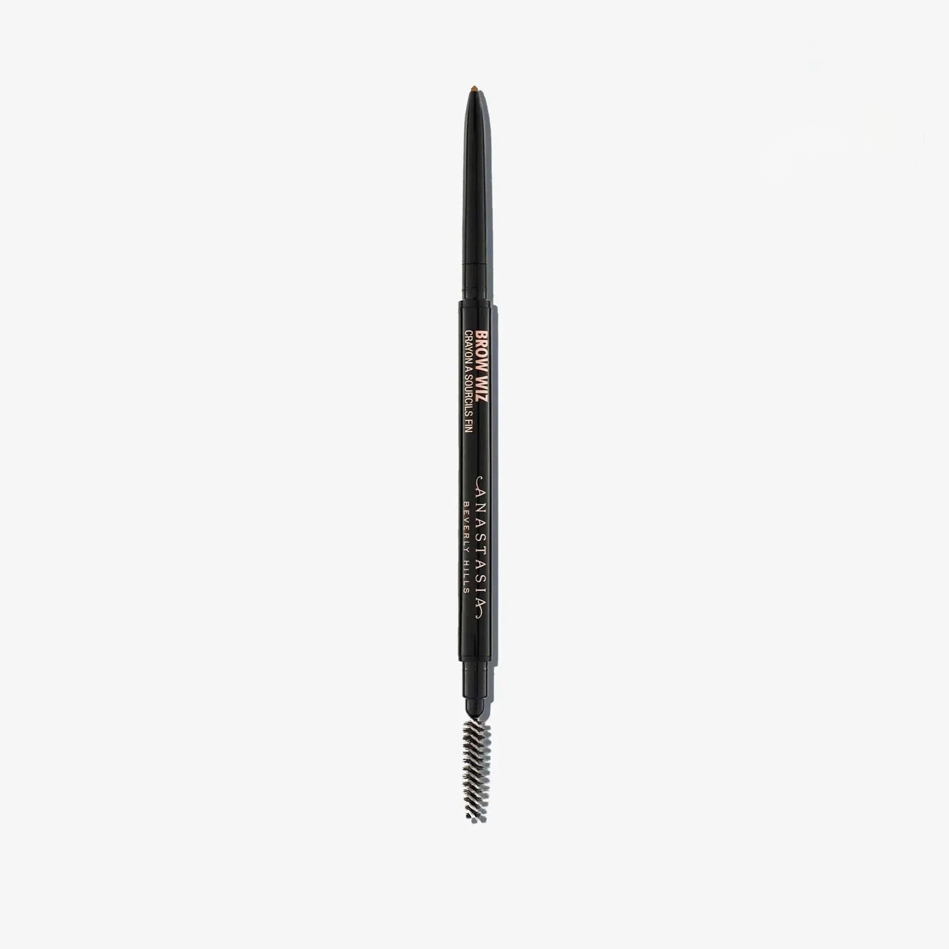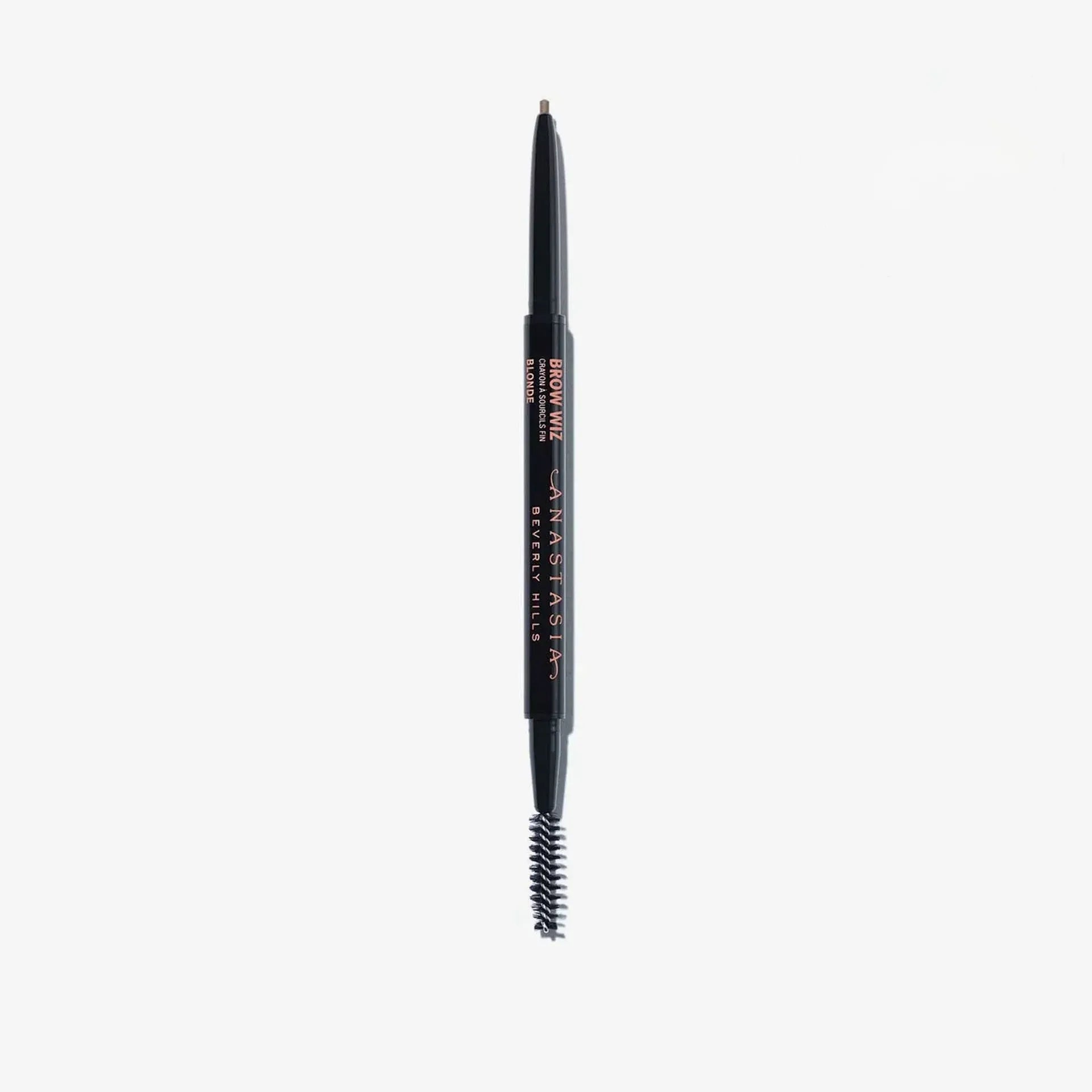 Anastasia Beverly Hills Brow Wiz es un lápiz de cejas ultrafino diseñado para definir, rellenar y dar forma a las cejas con precisión. Su fórmula de larga duración y su punta fina permiten trazar trazos precisos que imitan el vello natural, creando un look definido pero natural. Además, el Brow Wiz cuenta con un spoolie en el extremo opuesto para peinar las cejas y difuminar el producto, lo que asegura un acabado suave y natural. Disponible en varios tonos, es ideal para quienes buscan un control total sobre la forma y el color de sus cejas.