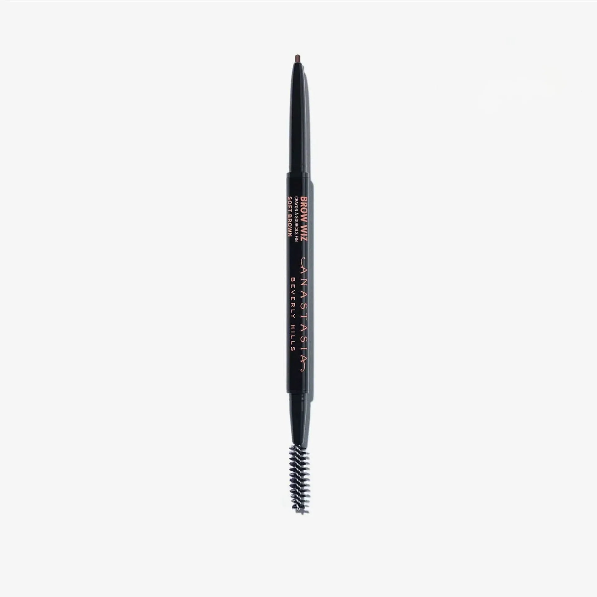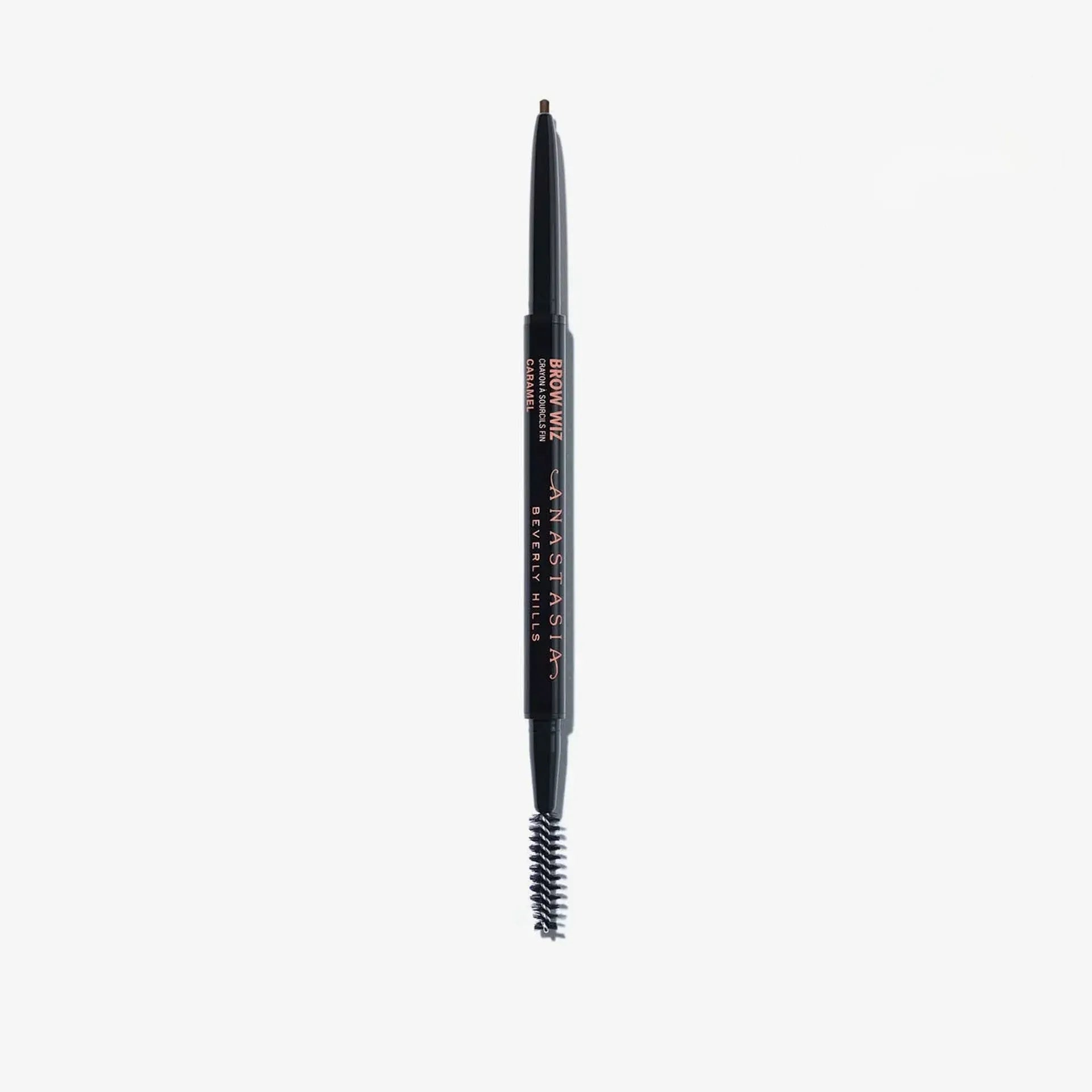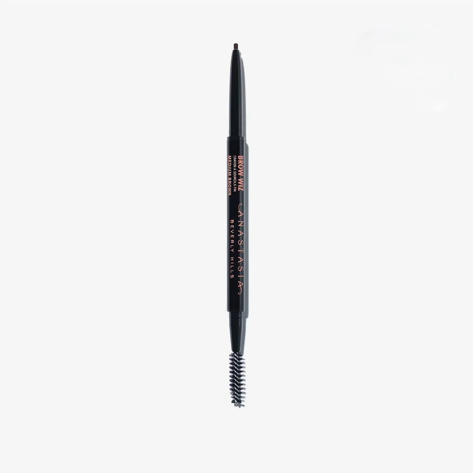 Anastasia Beverly Hills Brow Wiz es un lápiz de cejas ultrafino diseñado para definir, rellenar y dar forma a las cejas con precisión. Su fórmula de larga duración y su punta fina permiten trazar trazos precisos que imitan el vello natural, creando un look definido pero natural. Además, el Brow Wiz cuenta con un spoolie en el extremo opuesto para peinar las cejas y difuminar el producto, lo que asegura un acabado suave y natural. Disponible en varios tonos, es ideal para quienes buscan un control total sobre la forma y el color de sus cejas.