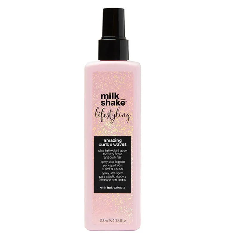 ¿Qué hace? Este atomizador ultraligero brinda un acabado natural, voluminoso y ligero sin apelmazar el cabello ni dejar residuos. Elimina el encrespamiento en cabellos rizados, protege de la humedad (el enemigo número uno de los rizos y ondas), pulifica el cabello y realza el brillo del color. Protege el color del cabello del desvanecimiento con una acción selladora. Debe aplicarse generosamente sobre el cabello para crear una película que lo proteja y lo haga más manejable durante el peinado. Una vez aplicado sobre el cabello húmedo, se activa su efecto memoria, que mejora el estilo y lo hace durar más. En cabello seco, revive los rizos y la elasticidad del cabello. Su textura ultraligera y envolvente ayuda a que el uso de planchas o tenazas sea muy suave. Para mejores resultados, no apliques otros productos de peinado antes de usar milk_shake® amazing curls & waves.