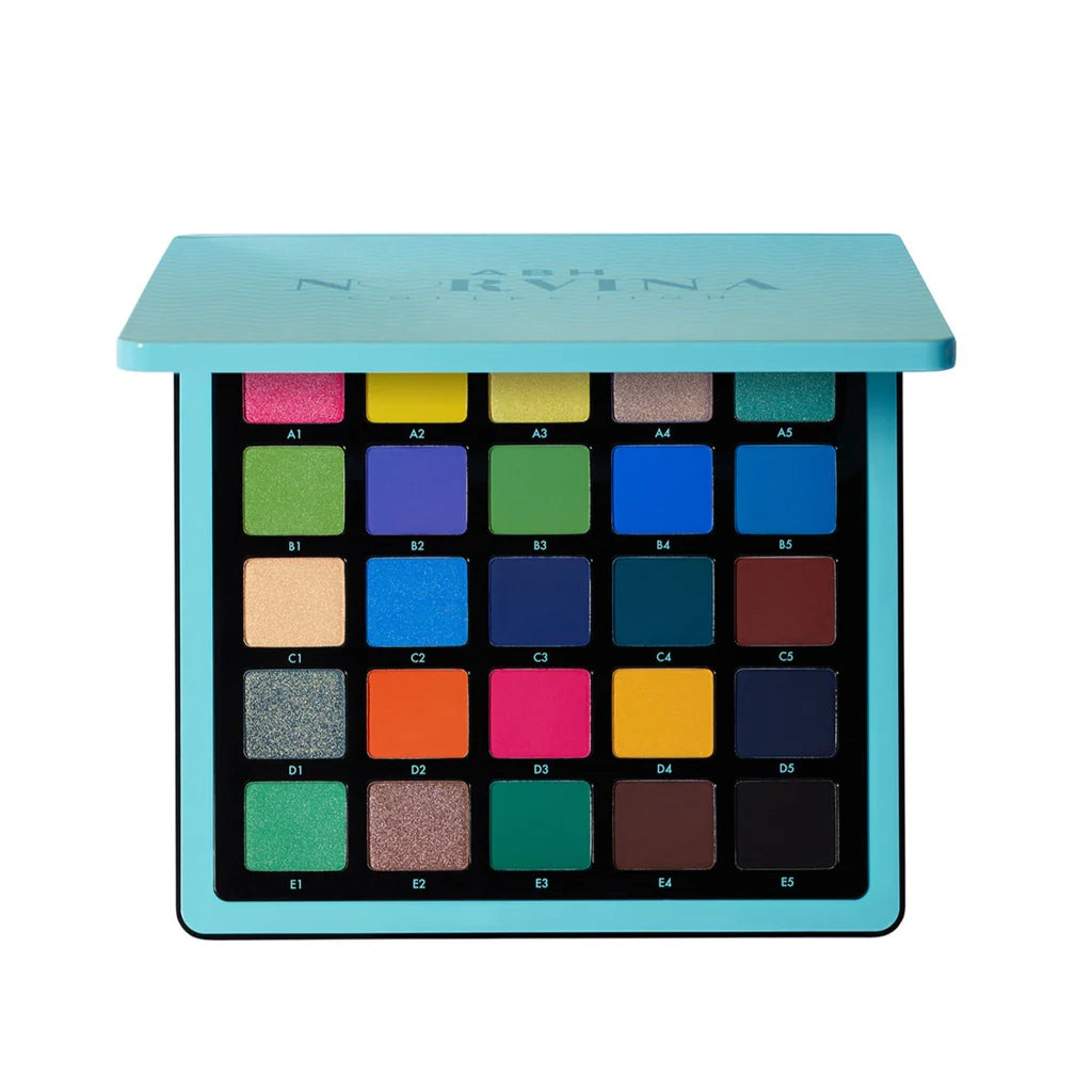 Norvina Pro Pigment Palette Vol. 2 es una paleta de sombras de ojos profesional que presenta 25 tonos vibrantes con una mezcla de acabados mate, metálico y brillante. Con una amplia gama de colores, que incluyen tonos naranjas, rosas, morados, rojos, y algunos matices cálidos y fríos, esta paleta permite crear looks tanto audaces como suaves.